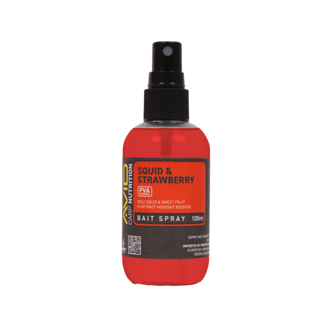 Deze baitspray bevat een krachtige mix van lokstoffen om de geur en smaak van Squid & Strawberry Hookbaits te versterken. Het product komt in een sprayflacon van 100 ml en is ontworpen om de effectiviteit van het haakaas te vergroten.