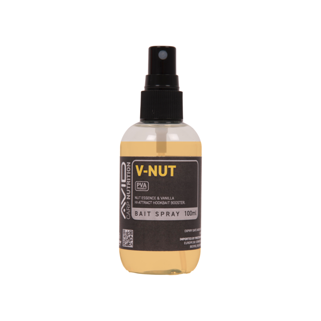 De V-Nut Bait Spray is een geconcentreerde spray die een krachtige mix van lokstoffen bevat. Het product is speciaal samengesteld om de geur en smaak van V-Nut Hookbaits te verbeteren. De spray wordt geleverd in een handige sprayflacon van 100 ml.